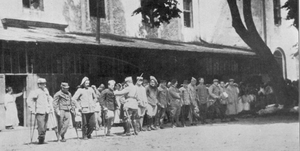 The poilu is a practical philosopher in the hospital. If he has lost a limb he is thankful for the one that is left to him. If he is badly wounded he is glad it is not worse.