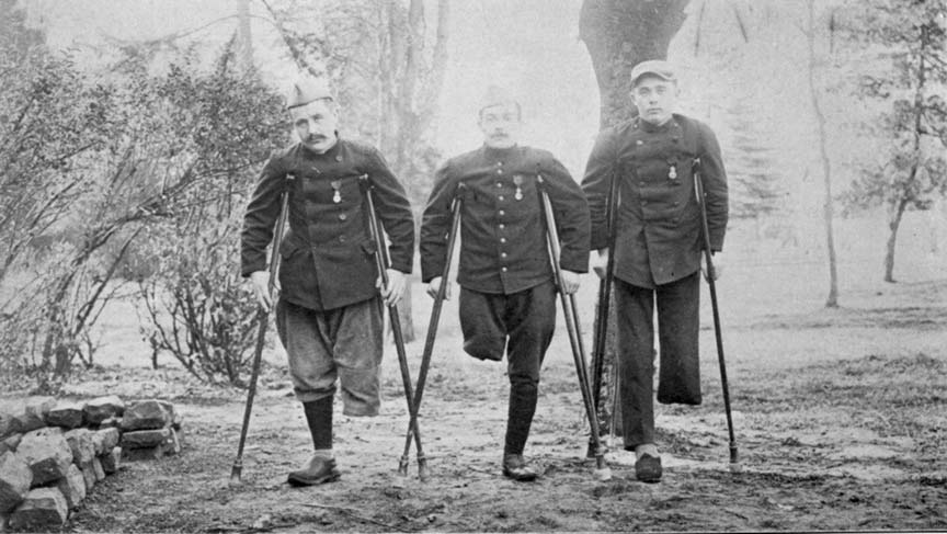 "I was one of six wounded placed in a large truck and sent to Paris. Three of us arrived there alive. We were taken to a hospital. I was delirious but conscious enough to hear the doctor say there was no use in amputating my leg. It was too late. I roused up and begged the doctor to amputate and give me the chance. He agreed. I do not remember much what happened during the next few weeks but I gradually recovered and in three months was out of the hospital. One day, limping along on my crutches, I saw a sign 'American Artificial Legs.' I entered the shop and made arrangements to obtain one. I became interested in the construction and fitting of the leg and delighted when I found I could use it so readily. On account of my speaking some English the manager offered me a position and so now I have changed from a grocer into an artificial leg artisan and I have fitted several hundred legs and know there will be many more."