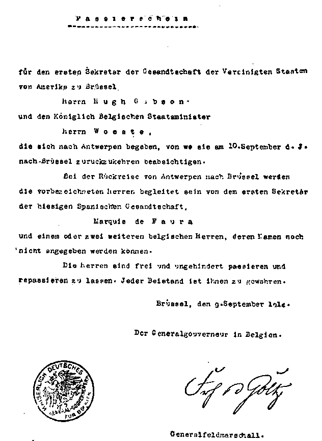 to enable Mr. Gibson to pass through the German lines to Antwerp.