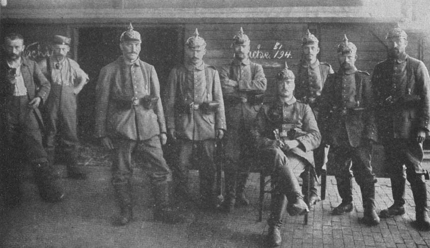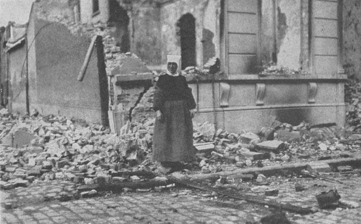 Beside this man's property there is a railway crossing. When a troop train passed over it day before yesterday, there was an explosion like the report of a rifle. The train was immediately stopped. The officer in command announced that civilians had fired upon his train, and ordered all the men in the vicinity taken prisoners. Then, refusing to listen to explanation or discussion, he had them all stood up against a wall and shot. When it was all over, he listened to explanations and learned that the report was that of a cap placed in the switch by the German railway men as a signal to stop the train before reaching the next station. By way of reparation, he then graciously admitted that the civilians were innocent. But, as my caller said: "The civilians were also dead."