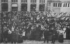 By this time the Chef de Gare had come to answer our questions and we waved our persecutors aside while we talked to him. They kept quiet and meekly stood aside, as we bade them. While we talked with our functionary, I looked out on the square and saw that we were a real sensation. The Garde Civique had been called out and was keeping the place clear. The crowd was banked up solid around the other three sides of the square. They looked hopeful of seeing the German spies brought out and shot. By signing our names on a scrap of paper, which the amateurs compared with the signatures on different papers we had about us, we convinced them that we were harmless citizens, and were allowed to go. The crowd seemed greatly disappointed to see us walk out free. The Garde Civique let them loose as we got in the car, and they came thronging around for a good close look at us.