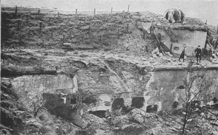 First, we went to the north gate, only to find that it had been closed to vehicles a few minutes before, and that barbed-wire entanglements had been stretched across the road. Argument was vain, so we worked our way back through the traffic and reached the Porte de Tournhout, only to be turned back again. For nearly an hour we wandered about in the stream of refugees, in vehicles and on foot, before we finally succeeded in making our way through a side door of the Porte de Tournhout, and starting that way. We were not at all sure that we should be able to reach the Dutch frontier through Tournhout, as the Germans were supposed to be that far north, but we did make it after a long series of stops, to be examined by all sorts of Belgian outposts, who kept cropping up out of fields to stop us and look through our papers. From some little distance out of town, we could see the shells bursting over the southern part of the town, or possibly over the villages, to the south of the town proper.