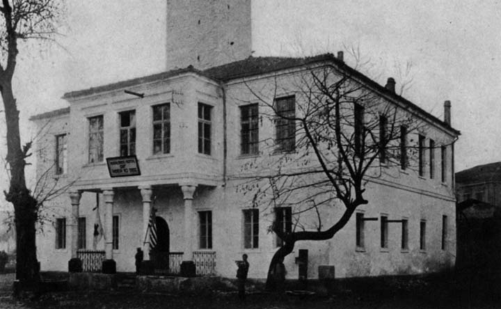 It was comparatively easy to work in France, where supplies could be secured, but in the Balkans no plan which involved transportation worked out according to schedule, and if supplies were not forthcoming it was necessary to improvise substitutes. Submarine activities in the Mediterranean prevented the delivery of equipment for the Vodena Hospital. Fortunately, Dr. Keyes was well supplied with instruments, and, with the aid of carpenters, tinners, and whitewashers, the hospital, which had been opened some time before in a Turkish schoolhouse, was renovated and put in working order.
