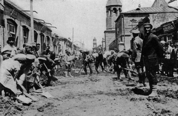 Groups of visitors were always watching the children, assembled from the different posts, drilling in preparation for the picture. Companies under their own leaders were so well trained that they marched and counter-marched, forming the most intricate figures with little apparent effort. On one occasion, the question of what was to become of these children was discussed by a group of American spectators. They would, of course, be engaged in different industries, particularly the basic industry, farming, and they would undoubtedly exercise a safe and sane influence in an unsafe and insane environment. This was the stock argument, but some of the American personnel, who had lived in the country long enough to develop a pink tint, maintained that it was none of our business what the children did when they grew up. We had not asked what was to become of the French children we had cared for after the war, or the German or Austrian children. We were not asking why Turkish students in American schools in Asia Minor were so partial to engineering. Why should we ask what was to become of the children in Soviet Armenia?
