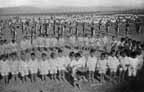 Polygon Post was five miles from the parade ground, and these little tikes walked in their bare feet, drilled most of the day in the hot sun, without food and with very little water, and marched back in the evening, as chipper as though nothing had happened. I thought surely some of them would be sick, but they seemed to enjoy the experience, which had no bad effect whatever.