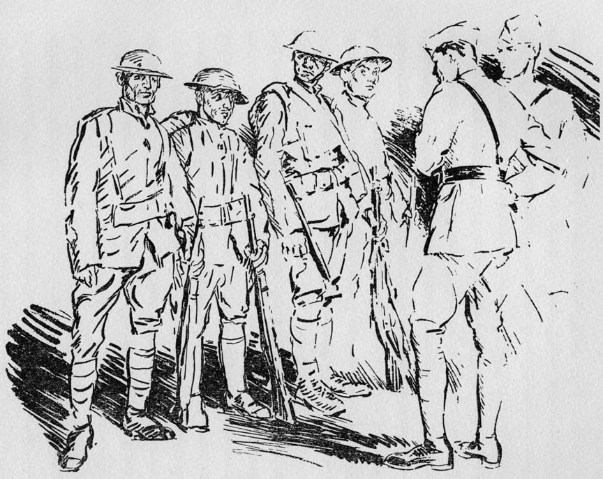 "The French officers," he announced, outlining this morning's trench work, "won't be here for ten minutes. Hold your men here and give them a talk on some useful subject."