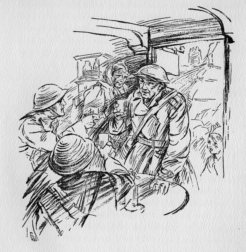 The car was gathering speed and I still ran alongside though they couldn't hear what answers I made. So, as they distanced me, I hollered my best explanation, "The French." But they were gone---the glowering heights of Hill 208 had satisfied them better than I could---and I sat down again and slept.
