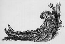 Pulling together what was left of my rather shattered dignity and picking up the automatic, which had someway escaped my usually firm grip, I asked him if he and his command would not please be seated, and then, to square myself with a lot of grinning runners who had crawled out of the brush during the excitement, I turned on the anxious gas officer.