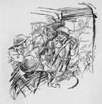 "Naw," came the scornful answer from the next platoon. "They don't have to dig." The whole platoon laughed joyfully over that, and the rest of the march was a noisy and happy parade with a grin on every face.