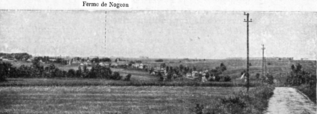 La ferme de Nogeon fut u des principaux centres de combat pendant les journées du 6 au 9 septembre. Prise par les Français après une lutte corps à corps, elle fut l'objet de plusieurs contre-attaques appuyées de violents bombardements qui la détruisirent complètement; mais le travail reprend vite ses droits et la vue ci-dessus montre la reconstruction en cours.