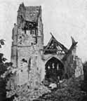 Le rôle que joua l'église d'Étavigny dans la bataille est tout autre que celui de l'église d'Acy. Par sa position dominante, en effet, elle assurait à l'observateur installé dans son clocher des vues précieuses sur les lignes françaises. Ce fut donc à coups de 75 que l'église fut mise en l'état que montrent les vues des pages 104 et 105.
