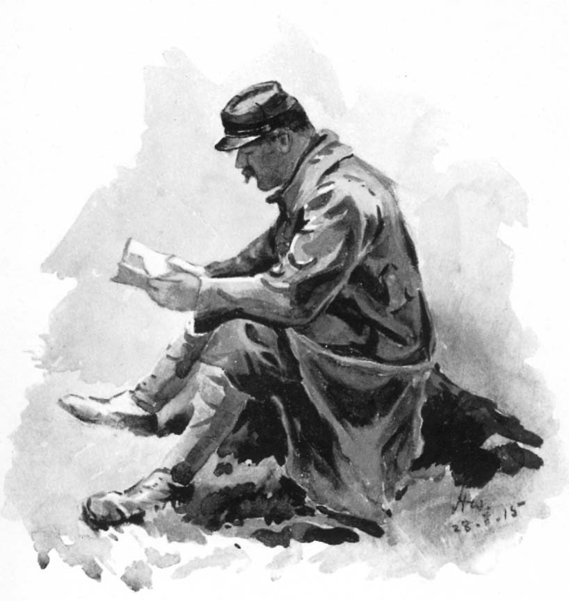 'Think then,' said she, 'a letter came from Germany, from the woman who was the wife of the officer. The letter was sent to our Mayor. I have seen it. That woman in Germany wrote and said she wanted the body of her husband to be carefully buried in a place where she could come and get it after the war. Think then of that,' she said again, raising her shaking hands in a gesture that reminded me of the Witches of Macbeth.