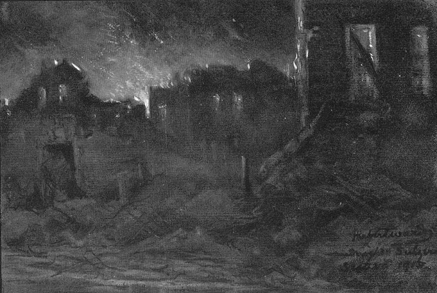 The following day there was a continuation of the bombardment, and the building in which we had passed such a pleasant evening was shelled and blown to nothing.