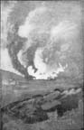 It was weird this morning when daylight came. On all sides were piles of red earth and fragments of rocks---wreckage everywhere; all the pine trees of what was once a forest-clad hilltop are reduced to stumps and splinters. Here and there one could just detect a thin column of blue smoke, suggestive of early morning coffee in an underground refuge. The question of getting a wash was soon settled; there were many rain puddles. The view is exceedingly fine, and one can trace the trenches for many miles among the mountains on three sides. The gaiety of all the men is remarkable. Every man wears a cheery face, and there's just a subtle something in their manner that tells of the conscious pride they feel in facing danger and death.