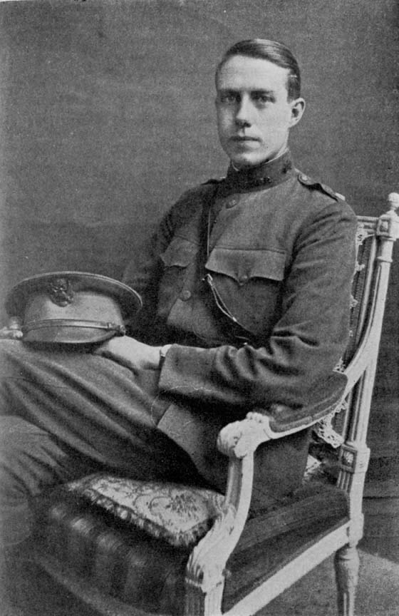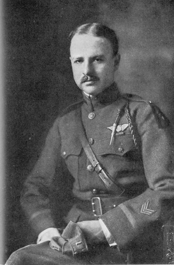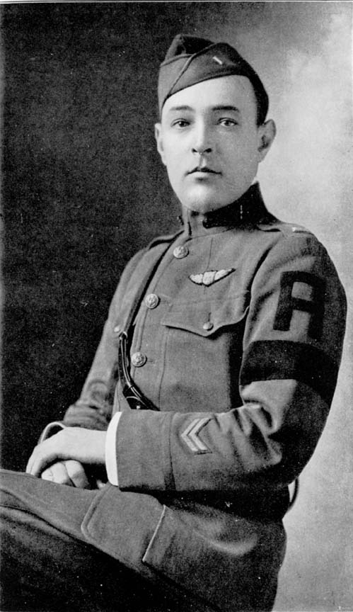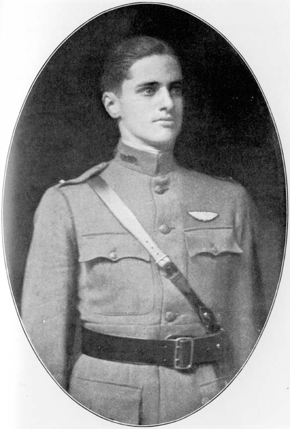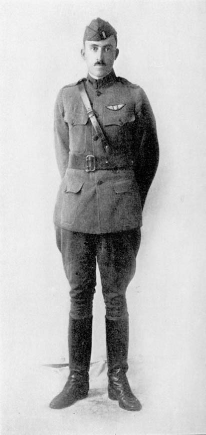 He enlisted at Plattsburg, N.Y., on May 15, 1917. He trained at Plattsburg, at M.I.T. Ground School, at the flying fields in Mineola, N.Y., and at Kelly Field, Tex. He was commissioned 1st Lieut. in Sept., 1917, and sailed overseas in command of the 117th Aero Squadron on Dec. 16, 1917. He was stationed at Issoudun, where he was in command of one of the fields, and at Clermont-Ferrand. He was assigned to the 96th Aero Squadron, and participated in several bombing raids over and around Verdun and St.-Mihiel. He was a trained and experienced bomber; and while awaiting planes for his especial work he did much ferrying of new planes from Paris to the battle-lines. He developed considerable aptitude for cross-country work in strange places, and was ordered to take a special course in aerial navigation in England, but owing to the Armistice the order was revoked. He was discharged at his own request on Feb. 1, 1919.