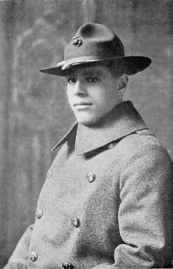 He enlisted on July 5, 1917, at Winthrop, Md.; he was attached to the Winthrop Rifle Range, and trained at Quantico, Md., Officers' School. He was then chosen as one of the First Aviation Force of the Marine Corps, and trained as an aviator at Garden City, N.Y.; Philadelphia Navy Yard; and Miami, Fla., where he became an instructor in advanced flying and acrobacy. He was commissioned 2d Lieut. on June 22, 1917, and 1st Lieut. on July 1, 1918. He sailed overseas Sept. 16, 1918. Two days after landing at Liverpool he died in that city, of pneumonia, on Oct. 1, 1918; he was buried at Hartford, Conn.
