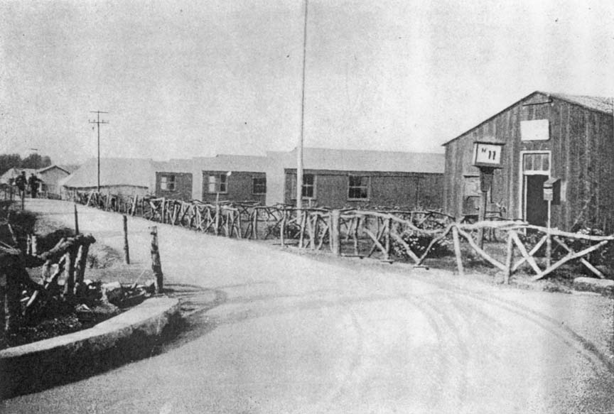 A wide asphalt and cement road was constructed from the railway crossing at Camiers across the center of the area and nearly to the "Boulonnais Cement Factory," where it formed a loop and returned parallel to the railway back to the crossing. At several points intersecting streets were laid from east to west, thus providing each hospital area with ample facilities for motor traffic.