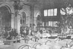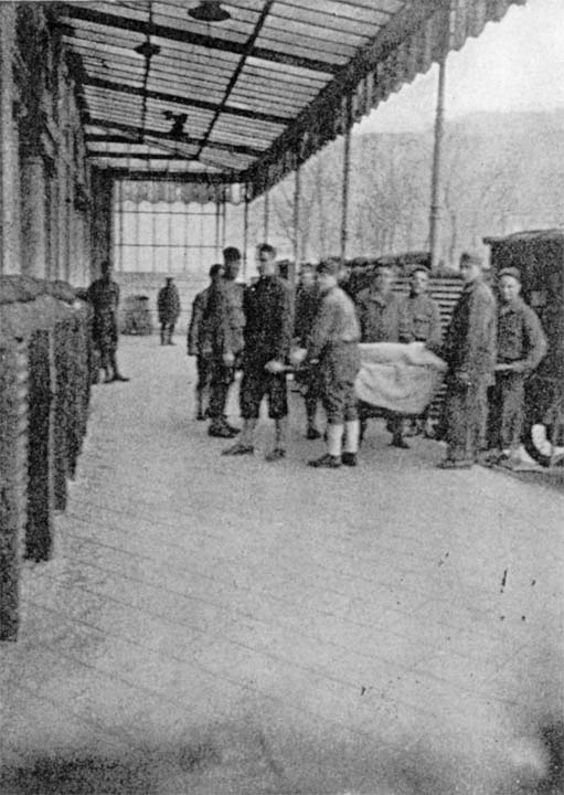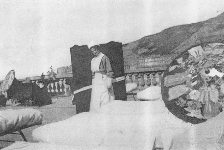 Upon arrival at the Casino, the officers, nurses and men found an abundance of work ahead of them. The hospital, which cared for about six hundred and fifty patients, was taxed to its capacity. It was evident that the former staff had been unable to give a great deal of attention to the cleanliness of the wards or special care to the patients. It was necessary, therefore, to evolve an efficient system of management in our new home and to conduct a thorough cleaning of the hospital wards and surroundings.