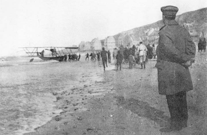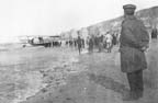 Early on the morning following our arrival, after we had policed our quarters, we heard heavy firing from the direction of Boulogne. Soon the guns on the hill just over our camp came into action, and it dawned upon us that a German plane was in the vicinity. It was a new experience for us and we watched with great interest as the shells broke around the tiny silver thing which we were told was a German plane.
