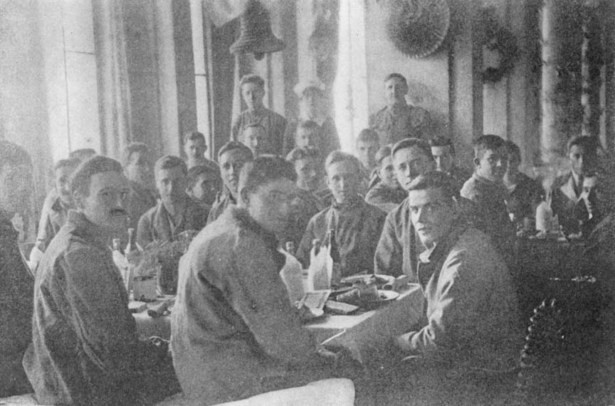 Our first meal at Fort Totten was something of a revelation. Only the fact that we were starved after our long trip induced us to eat at all, for the food didn't exactly tend to remind us of the homes which had been left behind. We were assigned to barracks and spent our first night in a good sleep. It must be admitted that we were rather cold, for being unused to army cots it never occurred to us that we would need as many blankets under us as we would over us.