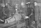 In all armies the advanced medical service is practically the same, because, even under the best of conditions, the treatment of wounded at the advanced posts can be only in the nature of "first aid." Invaluable work was performed by teams of eminent surgeons, British and American, at the Casualty Clearing Stations where they were called upon to perform delicate operations under heavy artillery fire and bombardment. However, the greater part of the surgical and medical treatment is given in the British General Hospital which corresponds to the Evacuation Hospitals which did such effective work in the A. E. F.