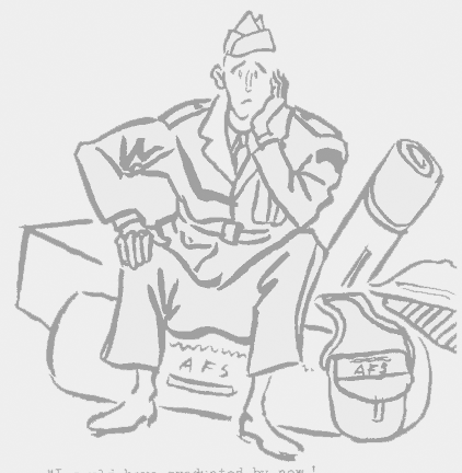 Also: There is now available a book called "Fair Is Our Land" written by Samuel Chamberlain and Donald Moffat who served in the A.F. S. in the World War. It is a representation of American in etchings and photographs, published by Hastings House for $5.00. On all copies ordered thru us we receive the proceeds.