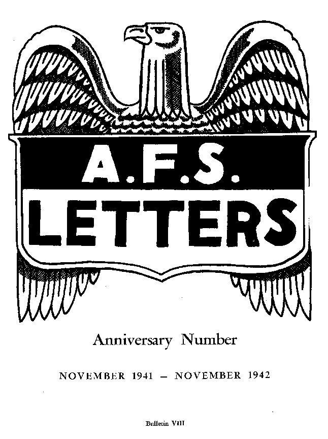 Through the year we have expanded in several ways and some things, now that we look back on them, seem not to have happened, but like Topsy they "just grew." The list of the AFS representatives throughout. the country has grown and changed; new men have taken over new posts, and other new men have replaced those who have joined the Armed Forces,