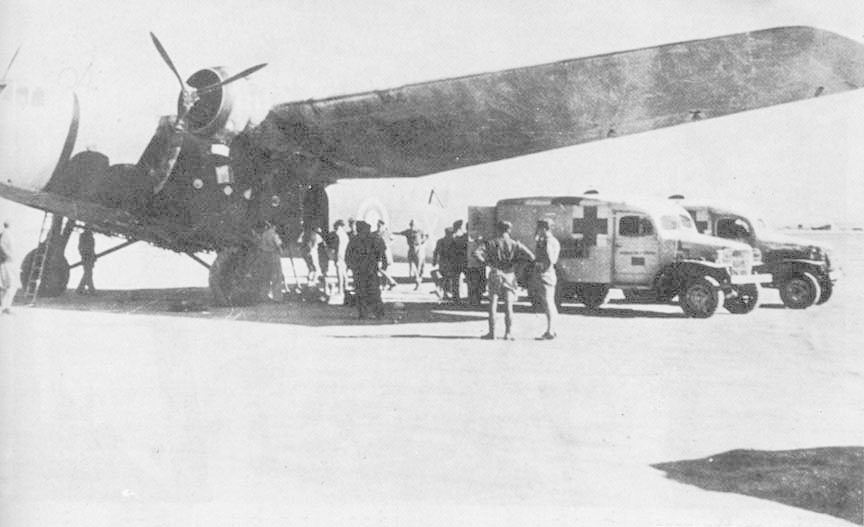 "The sensation of being lost came my way several times, and once with a load of patients during one of those desert rains. The rough journey did not do them any good, and when I got stuck in some saturated slit, they had to pile out and help, those who could. Evacuated, then 3 days to catch up with the fast moving drive."
