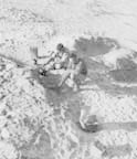 "The boys are working in a field of weeds and flowers just ahead of me now, with their electric detectors sweeping ahead of them. When they find a mine, they render it harmless by fixing the safety catch. Senussis wandering around the desert are often the innocent victims of Jerry's mine-planting.