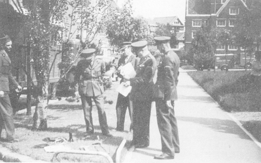 The next morning J.F. and I were sent out to get the U bolts "and any other valuables" from an ambulance that had been blown up on a mine about midnight. "It's near a destroyed bridge a few miles north of here" ---those were our instructions. J. and I had had our only previous taste of war when we saw "Sergeant York" back in Radio City. We set out about 9 a.m. and after driving thru field after field deployed with the tanks of the famed 7th Armored Division, "the desert rats", came to a ridge that was blown out. A bunch of Royal Engineers were completing a diversion around the damage and we stopped to find the ambulance. This turned out to be the wrong bridge and finally an officer told us that the only other bridge in the vicinity was some 5 miles further along. Before we left we asked about the dozens of round iron boxes lying around and a long lecture ensued on the nastiest feature of modern warfare, the mine. There was a very complete display here we were told. "Jerry ran short of mines for a while, but here he's left everything he has ---"must have had a new ship come in", a Tommy sergeant told us.