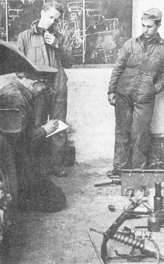 After a session in maintenance, tools used by AFS men are checked by a British mechanic. Photo by Jock Cobb |