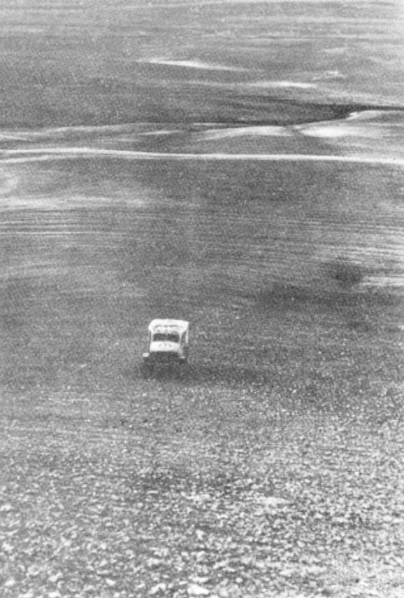 That started him off on the "if your number's up" routine. All these guys that have been thru a lot of action have this phobia. Well, the corporal headed right down the bank to the river bed and J. and I followed in his footsteps, and I don't mean followed an inch from his footsteps, we followed in them. On reaching the car, whose front end was completely ruined, we climbed in to see about the tools and to try and calm down a little.