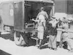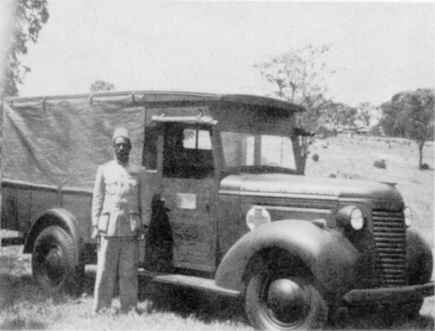 "Living in one of our ambulances is extremely comfortable. The cab is separate from the other part and the living part is like a little room with large cupboards at the front end and white leather seats along each sides, which when turned over, become racks for stretchers. There are two other racks folded above the seats for two more stretchers. I sleep on one of these. It makes an excellent bed at night and a good table in the day. It is all very domestic. The walls and ceiling are a soft green. The back end is open with a canvas flap which can be rolled down. It has a little window in it which can be rolled up. The patients do not disturb things much as almost all my possessions are looked in the cupboard and my bedding roll and duffle bag are kept in racks beside the cupboards. After carrying patients, I always stop by the side of the road at one of the many little waterfalls, and wash out the ambulance. Of course there is maintenance work to be done too, supposedly once a week, but it is better to do it whenever possible.