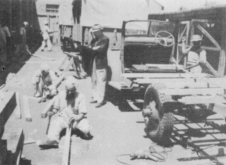 "The grounds around the house were once very beautiful; flower garden, neatly clipped hedges, etc. Now we park our ambulance on the front lawn, and have churned it into a sea of mud. The hedges have barbed wire concealed in them and slit trenches are dug in the flower gardens. There are a number of fresh British and Jap graves scattered around the place."