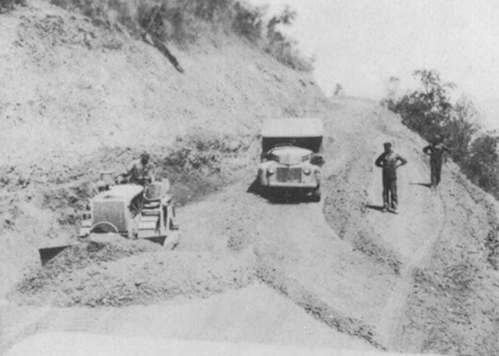 "These natives work for us as guides, stretcher-bearers and road workers. They use primitive methods and it is a strange sight to see them digging away a landslide with hoes and carrying the dirt in little baskets on their heads. It seems so slow in this fast-moving day, yet no landslide has held us up for more than a couple of hours."