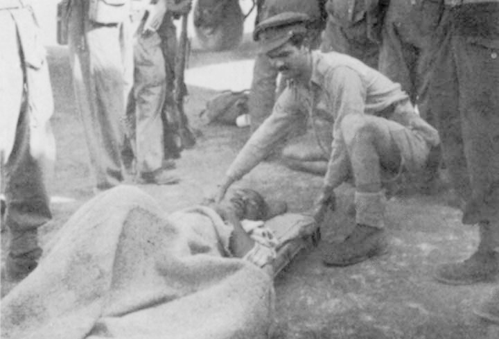 "Today, while waiting for a load of patients; I went into the operating room and watched the surgeon operate on an Indian who had three machine gun bullet wounds in his hand. It was a small operation, but I found it quite interesting. I must say the surgeon was good. He cleaned the wounds and opened up one that had fractured a bone in the palm of his hand. He cleaned up the tendon which had some frayed segments" and cleaned the bone. He then dusted the wounds with sulpha powder, bandaged them and put the arm in a cast. The Indian will be sent to the hospital where the fracture will be set and the wound closed.. This in an MDS where they only do emergency surgery and clean wounds.
