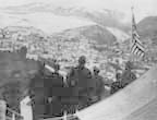 "From our position on the hill we have a beautiful view down, far down, the narrow valley to the higher mountains in the distance. In. one direction we can see the mountain where the Japs are still holding out. At times, when the wind is right, we can hear the big guns firing and the shell explosions.
