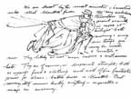 "I'll tell you about what happened to my friend 'A'. the other day. He was parked on the side of the road and a little way down the hill was some ammo stacked up with a little Englishman counting it. About that time everyone heard a whistling sound and the Englishman hit the dirt and about thirty feet from him a shell hit. 'A'. said. he saw something flying through the air and his wog and he hit the bottom of the car with his face up. He saw big black specks coming toward the window, since he was face up, and couldn't do a thing. Then he said they finally hit the windshield and windows after what seemed like ages. And to his surprise it just ran all over the windshield when it hit ---it was mud. When 'A'. finally stopped shaking and got his heart out of his mouth, he looked out the window and swears that the little Englishman was down behind on of the ammo boxes on hands and knees digging for everything he was worth. The shell must have been a small one and buried up in the mud and when it exploded, threw more mud than steel. 'A' swears he was never more scared in his life."