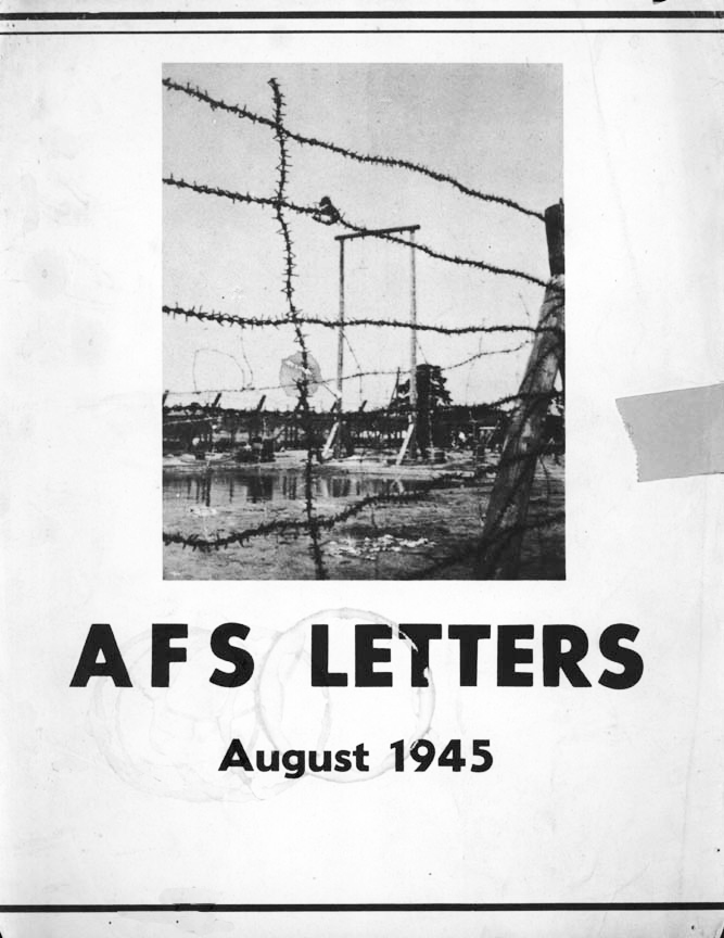 Those of the AFS men who worked in Germany, particularly at Belsen, have seen enough of the Nazi operations to make them perpetually remember; and give them a deep desire to help avoid any repetition. The comradeship and a common understanding which they have acquired in close association with the British and British Empire men, has made the world seem a smaller, friendlier place.
