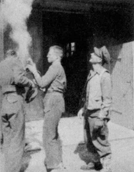 "The Gurkhas are really some soldiers. They are such likable little fellows that you just look at a Gurkha and his grin and grin and grin back. I have to laugh at some of the things they do. The Gurkhas had been fighting all night in this village and the next day it was clean as a whistle of Japs. I was talking to a little Gurkha or rather we were doing the best we could when he spied the detonator to a Jap bomb on the ground. What did he do but pick the darned thing up, motion another fellow away and throw it against a tree to see if it would go off. It didn't and wouldn't have hurt anything if it had, but, as for myself I was sick of hearing bangs. Not the little Gurk though. He had been sitting in the town all night while I had been about a mile away, but he still wanted to see if it would go off.