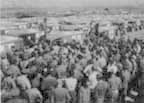 "The prisoners live in shacks about 150 feet by 75 feet. Some of them have double-tiered bunks and some have none at all, Six to eight hundred people live in each hut. One hut had 1250 living in it.