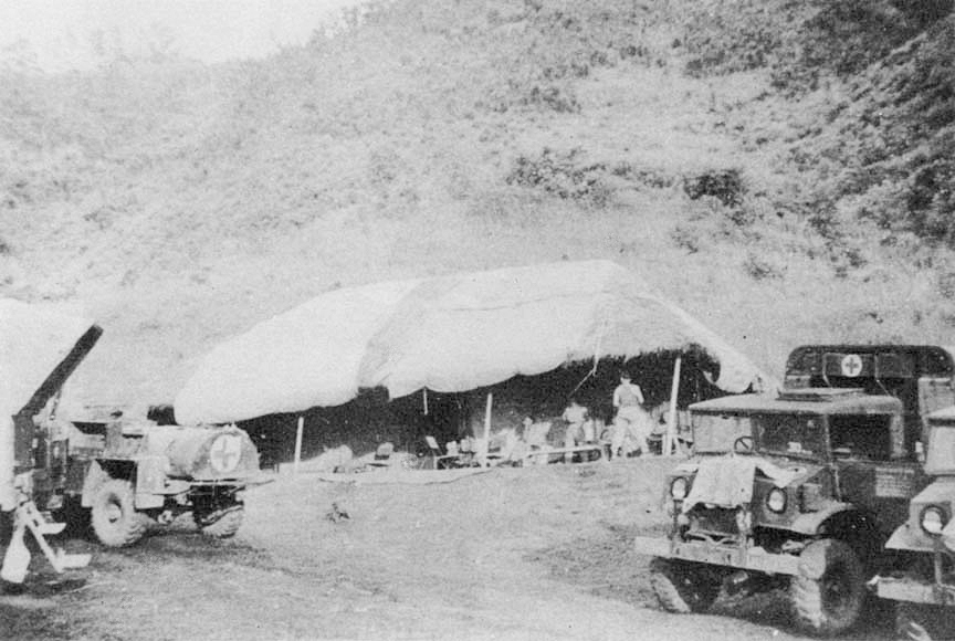 "Two nights before I had spent nine of the twelve blackout hours in a slit trench while everything the Japs had came over. That night a fragment took the top off a petrol tin on the back of my car twenty feet away. As soon as the road was cleared I started taking casualties to the rear. The day after I was awakened just after dawn to collect a single casualty and I got back as the sun was coming up. In the afternoon I spent several hours on the crest of ridges, waiting until tanks moved out and we got the green light to pick up what was left. Actually the tanks brought casualties back to the R.A.P.and we took them in from there.