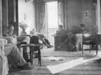 To the left as one enters, is the library, a small cosy room. Adjoining it is a writing room. Passing along the hall, one comes to the foyer, from which doors lead to the office, the living room, the card room, and the living quarters are designed primarily for our convalescents. There should be room for about ten or so at a time. The charge for the night, with breakfast, will be nominal. The kitchen and pantry exist for serving a light breakfast and tea. It is not planned to provide other meals. The furnishings are simple yet comfortable.