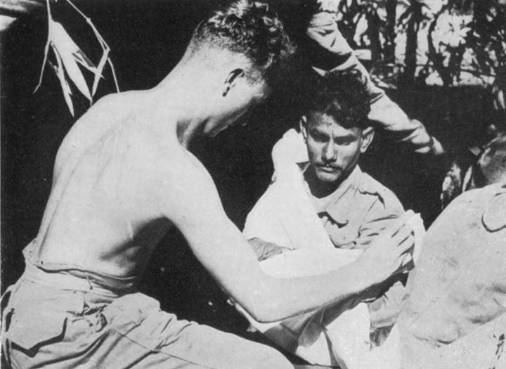 CORPORAL ASKE BANDAGES A WOUNDED RAJPUT |
