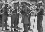 MILESTONE 109 ON THE KOHIMA-IMPHAL ROAD: MAJOR-GENERAL GROVER, BRIGADIER SALOMONS, LIEUT-GENERAL STOPFORD, BRIGADIER SMITH |