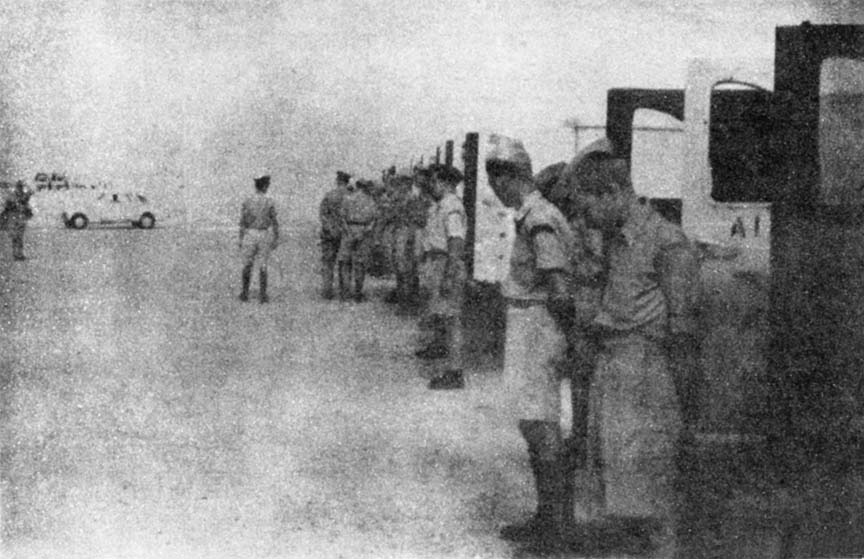 El Tahag was the scene of our short training program before we went to work as an ambulance car company. We were assigned new American army-type Dodge ambulances and taught to maintain them; we were given lectures on navigating by sun and prismatic compasses, on living conditions in the desert, on the British army medical system, and on the progress of the war; and we were taken on an over-night practice desert convoy in which each one of us took turns navigating and driving through sand at the head of the long line of cars. The whole training program was ended with an inspection of us and our cars by jovial and friendly British Brigadier Walker, Deputy Director of Medical Services in the Middle East
