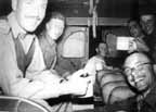We three were bundled as tightly as we could get against the far comer of the trench. Howard was squeezed against my right arm, Doc was half in my lap, half on the floor. In a semi-hypnotic state we had maintained our heated discussion, and Doc was saying "Lewis is a damned scoundrel," and I for the most part was agreeing. (Doc was referring to the beetle-browed organizer of the American miners and the breakaway CIO federation). We had been shouting at the top of our lungs to make ourselves heard. We must have been a comic sight, although none of us were impressed that way right then. We had counted 160 rounds.