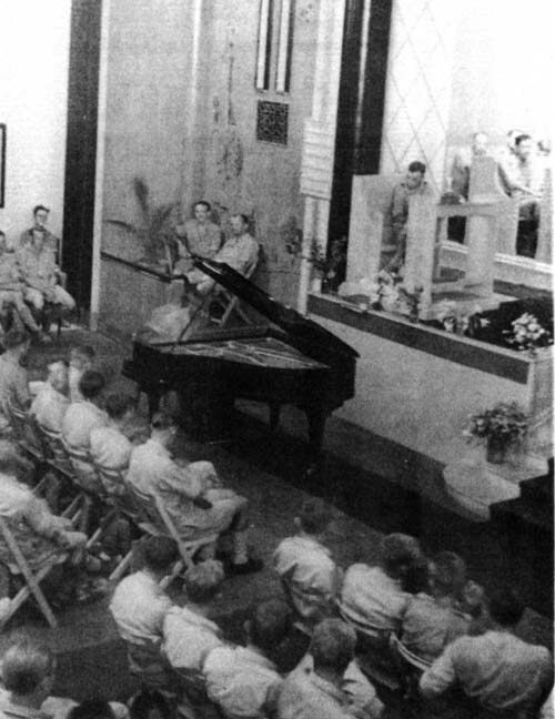 On Sundays I had written (July 18) "Sunday Church service was held at a little church called 'The Parish Church' overlooking the harbor with ships at anchor. The service was unusually good." The Sanctuary of this Church also doubled as concert hall for a number of performances by talented musicians, including of AFS.