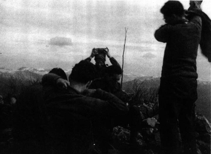 Others of us climbed a mountain, with the snow-covered ranges at the front dimly visible to the north. I was one of seven of us climbers, and wrote in a letter: "The trouble is, when you get to the top of one mountain, there are a hundred others all around. I never thought of Italy as a land of a million mountains."