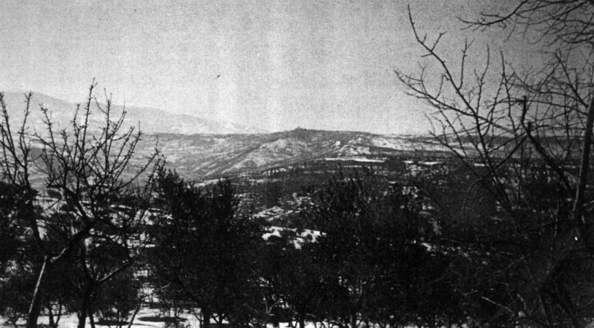 It was a short drive to this post, down a steep valley at the base of the north-facing escarpment of the city of Lanciano itself, then past a small village and on up one of the typical secondary switch-back roads to one of the abandoned farms along the next ridge where our post was located. A shallow valley separated us from. the German lines, visible behind mine fields along the lateral ridge between Ortona on the coast and Orsogna inland. The spring thaw had turned fields into the accustomed mud.